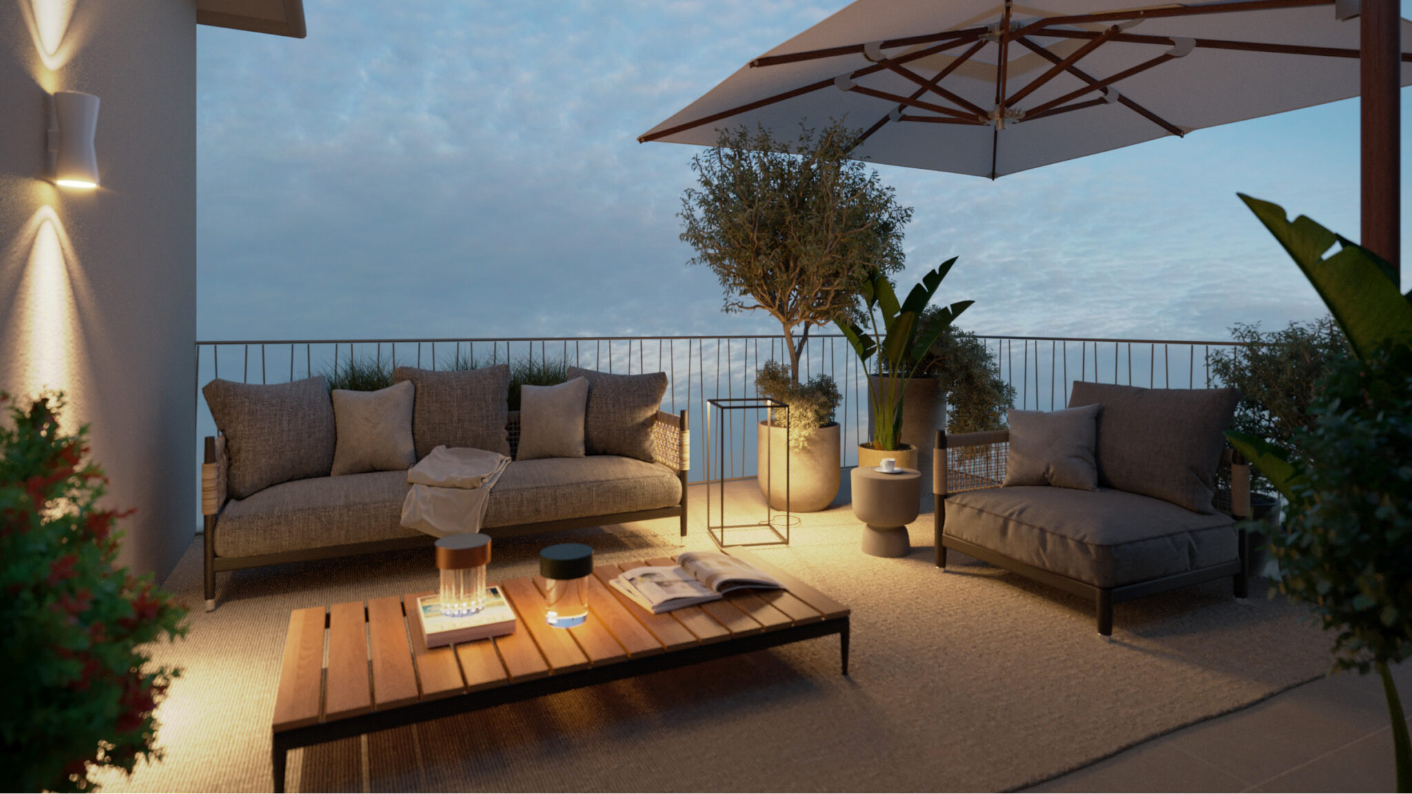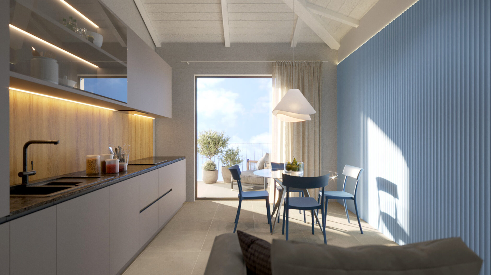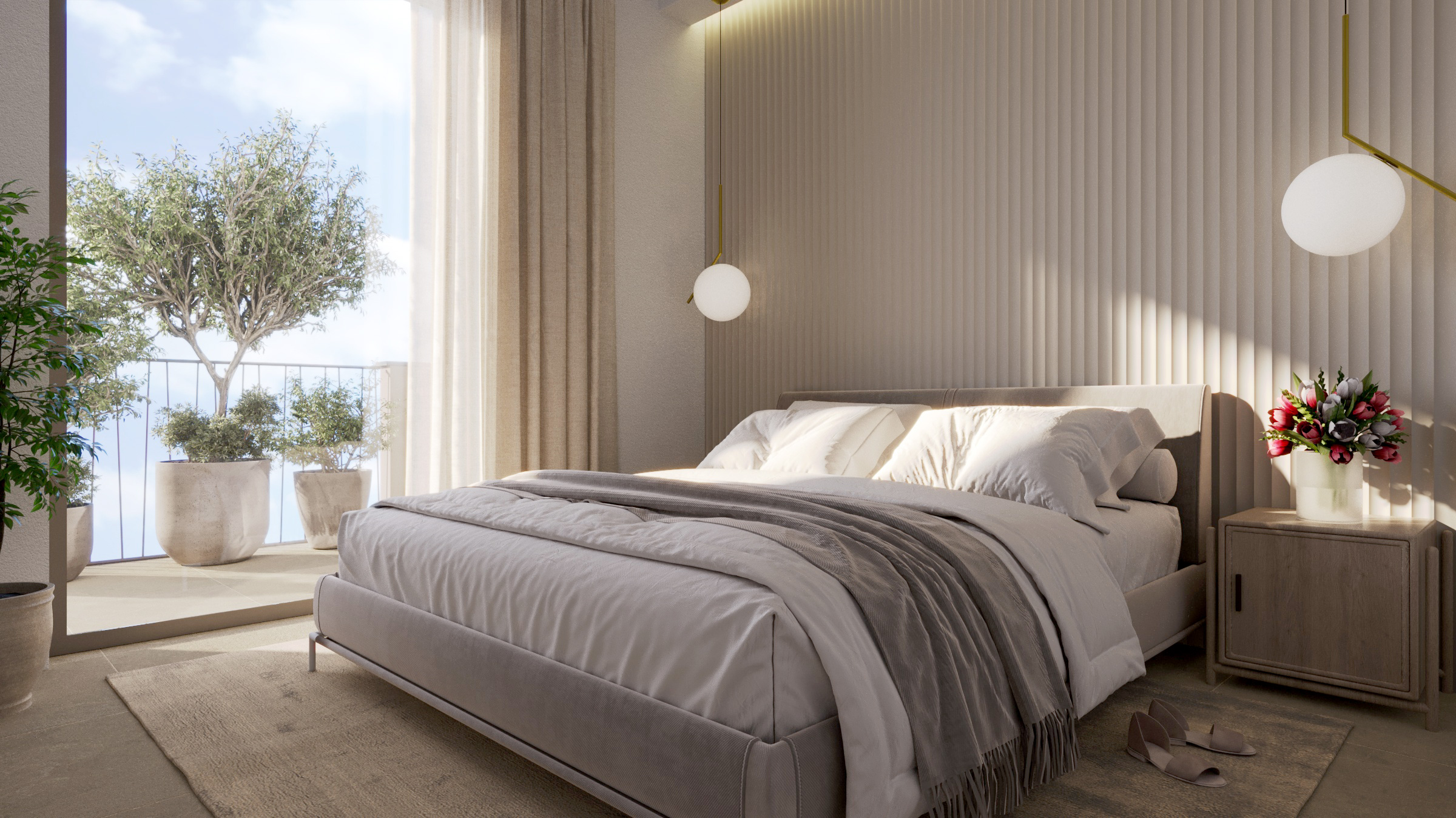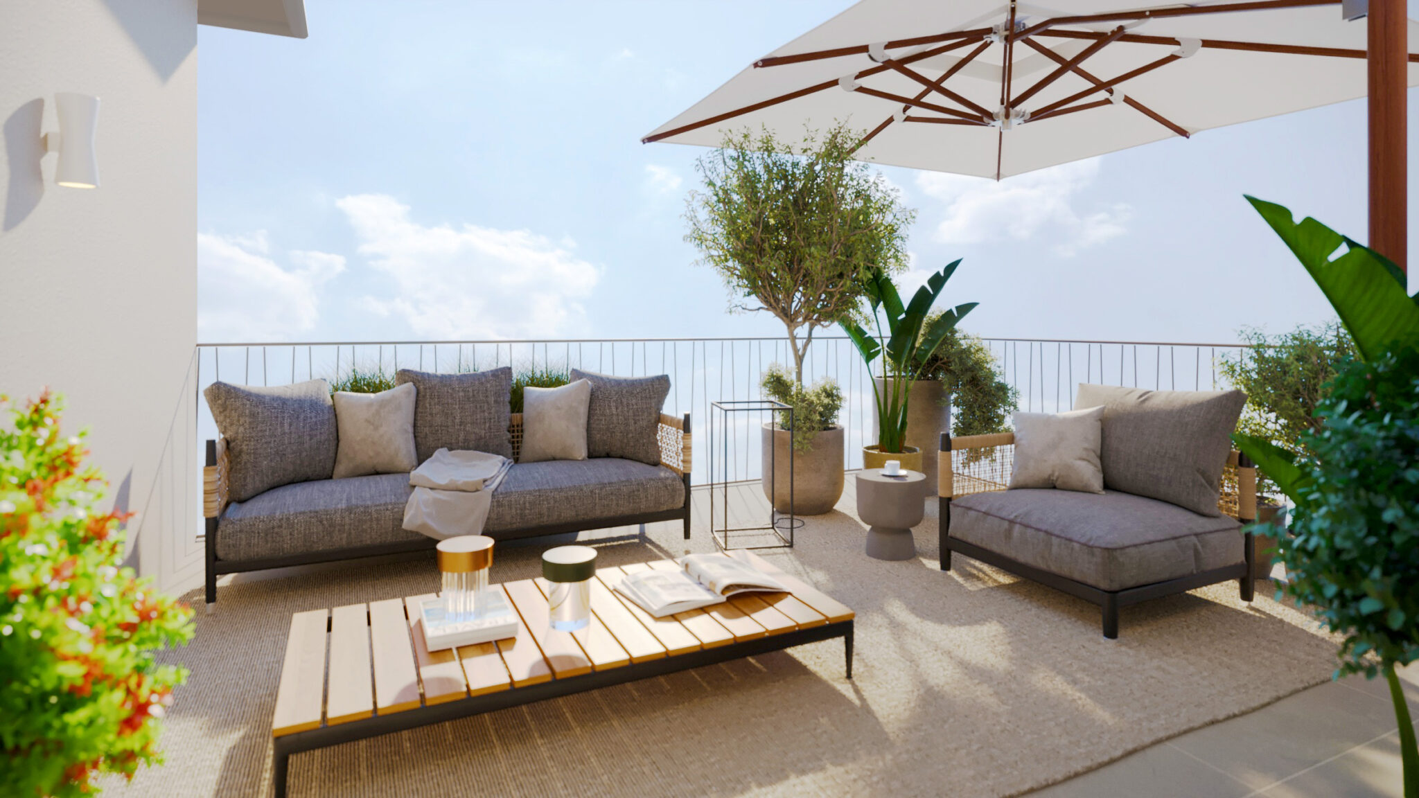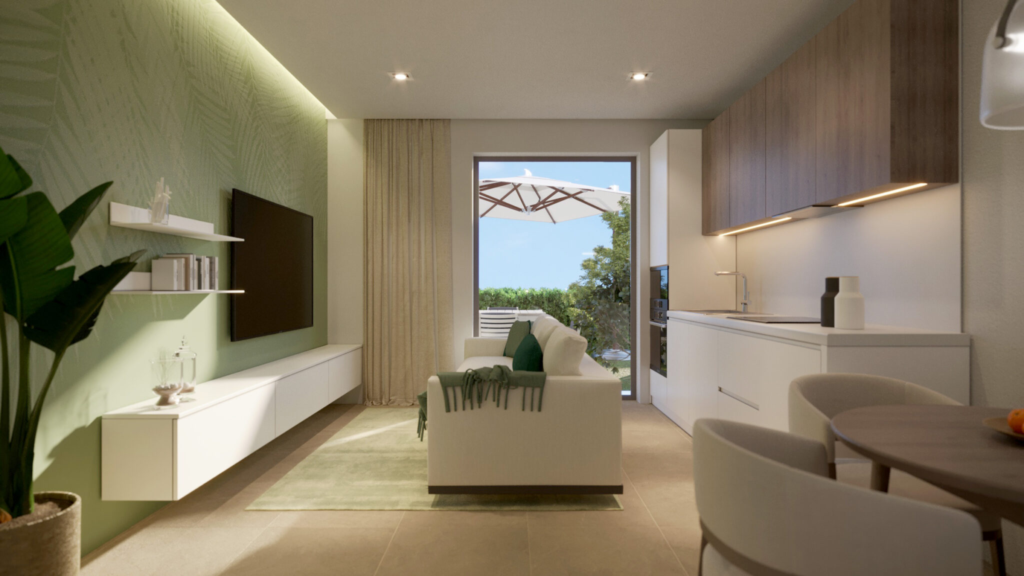 Gli appartamenti sono vere oasi di tranquillità: bilocali e trilocali con giardini privati o terrazzi spaziosi, ideali per rilassarsi e pranzare all’aperto con vista mare o verdi colline. La raffinata architettura moderna impiega materiali di pregio locali, con finiture eleganti e design contemporaneo.